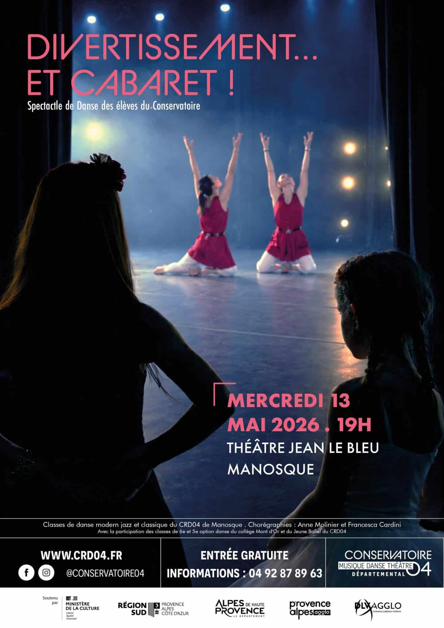 Le CRD04 de Manosque vous propose un spectacle réunissant les classes de danse modern jazz et classique, à travers des chorégraphies signées Anne Molinier et Francesca Cardini. Avec la participation des élèves de 6e et 5e option danse du collège Mont d’Or ainsi que du Jeune Ballet du CRD04.